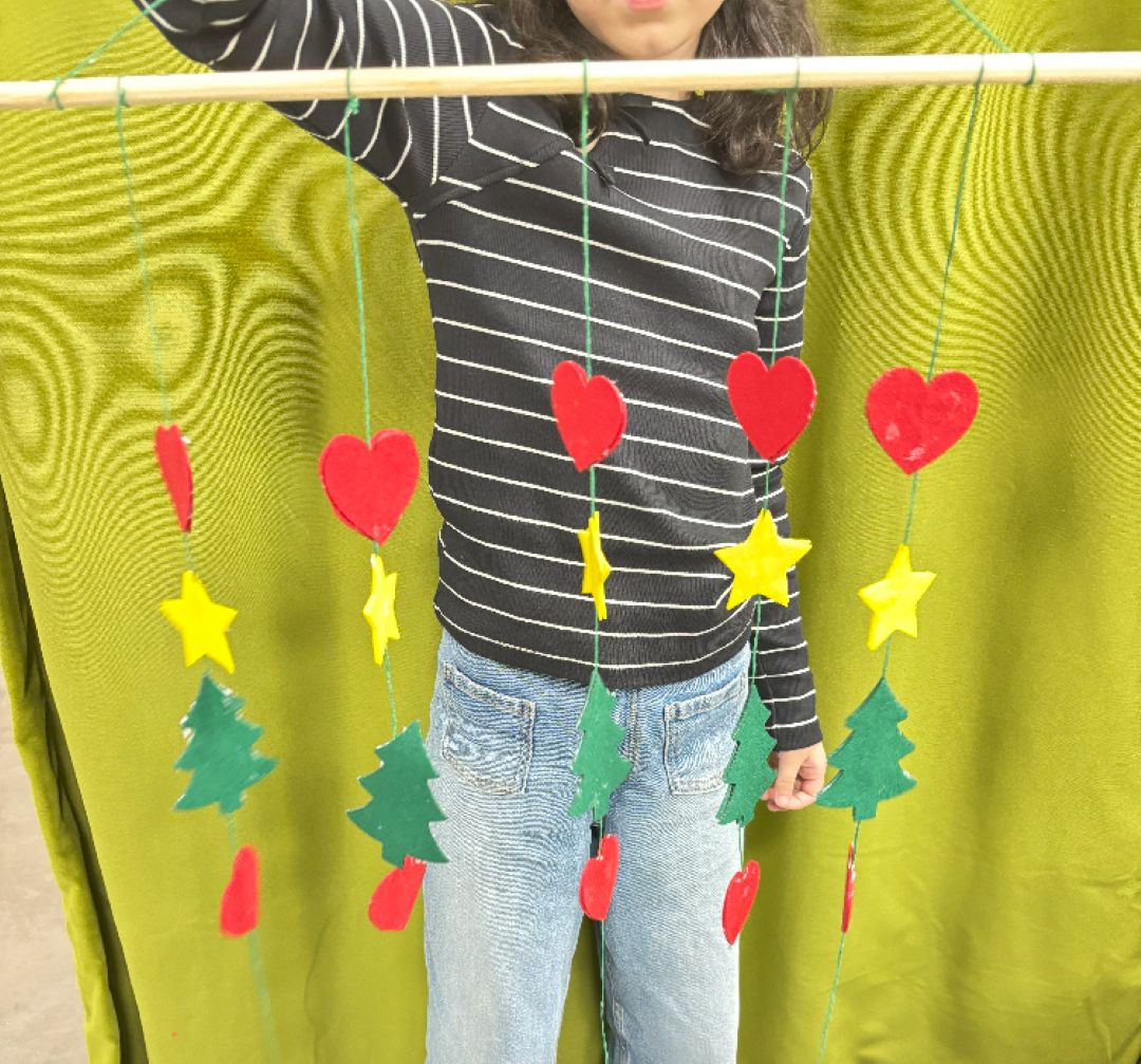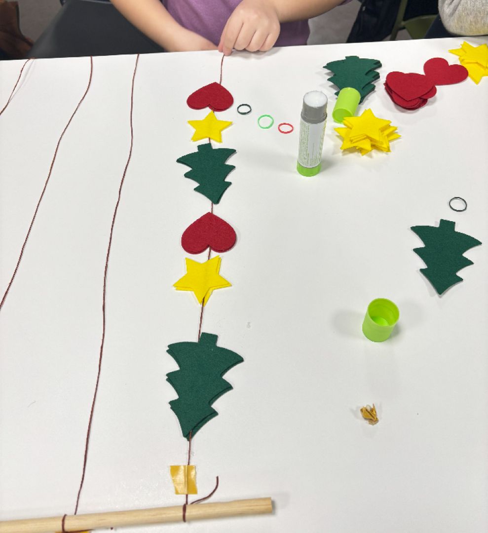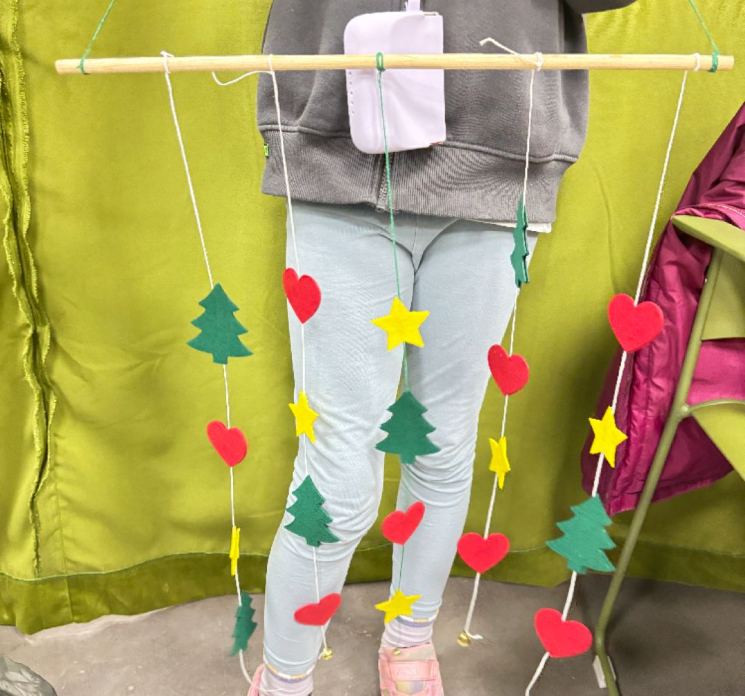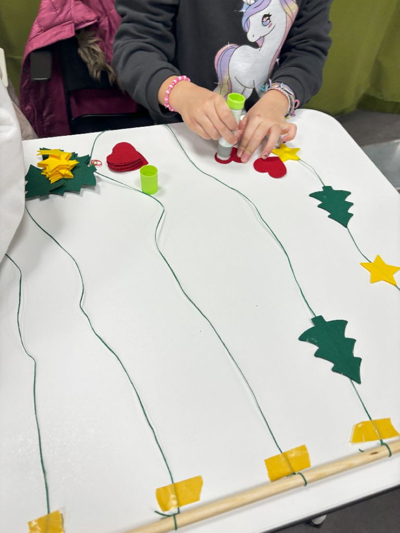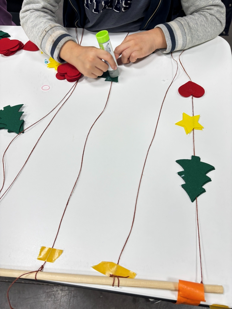 Durante esta actividad, niñas y niños diseñaron y montaron su propio adorno móvil, eligiendo figuras, formas y colores para crear una pieza decorativa única. Utilizando fieltro de alta calidad, hilos, cuentas y pequeños detalles decorativos, cada participante pudo experimentar con la composición y el equilibrio, viendo cómo su creación cobraba vida al moverse suavemente.