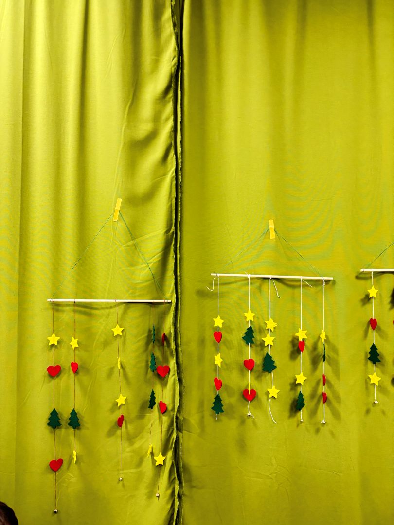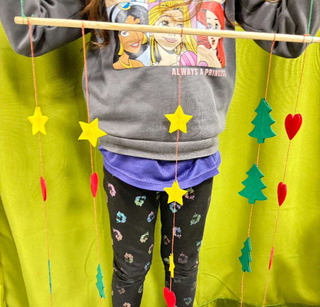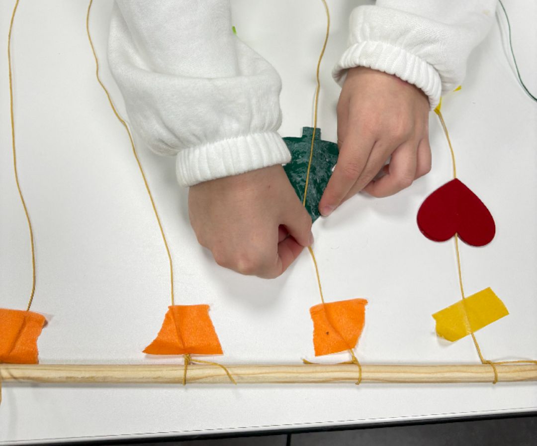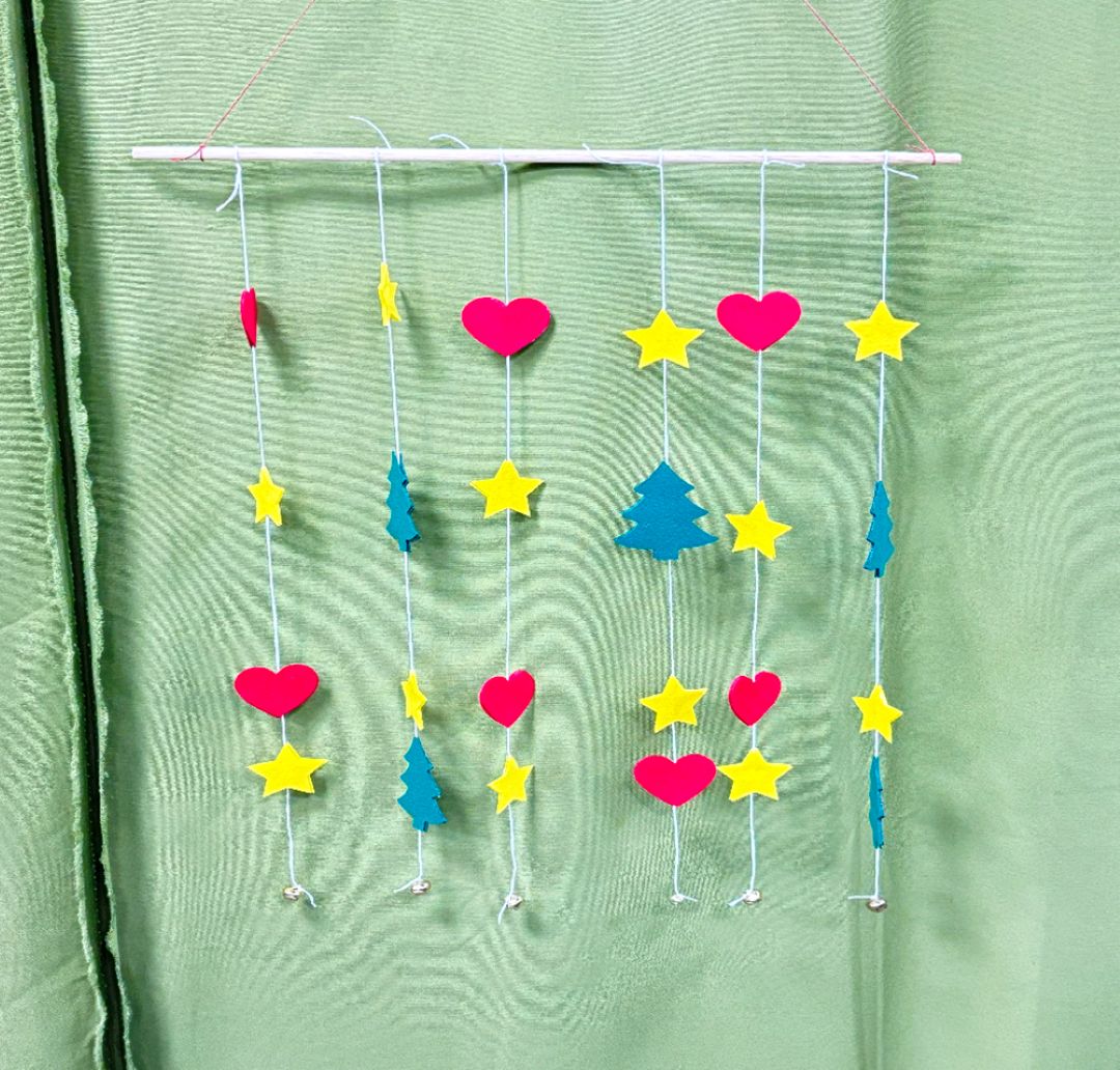 Durante esta actividad, niñas y niños diseñaron y montaron su propio adorno móvil, eligiendo figuras, formas y colores para crear una pieza decorativa única. Utilizando fieltro de alta calidad, hilos, cuentas y pequeños detalles decorativos, cada participante pudo experimentar con la composición y el equilibrio, viendo cómo su creación cobraba vida al moverse suavemente.