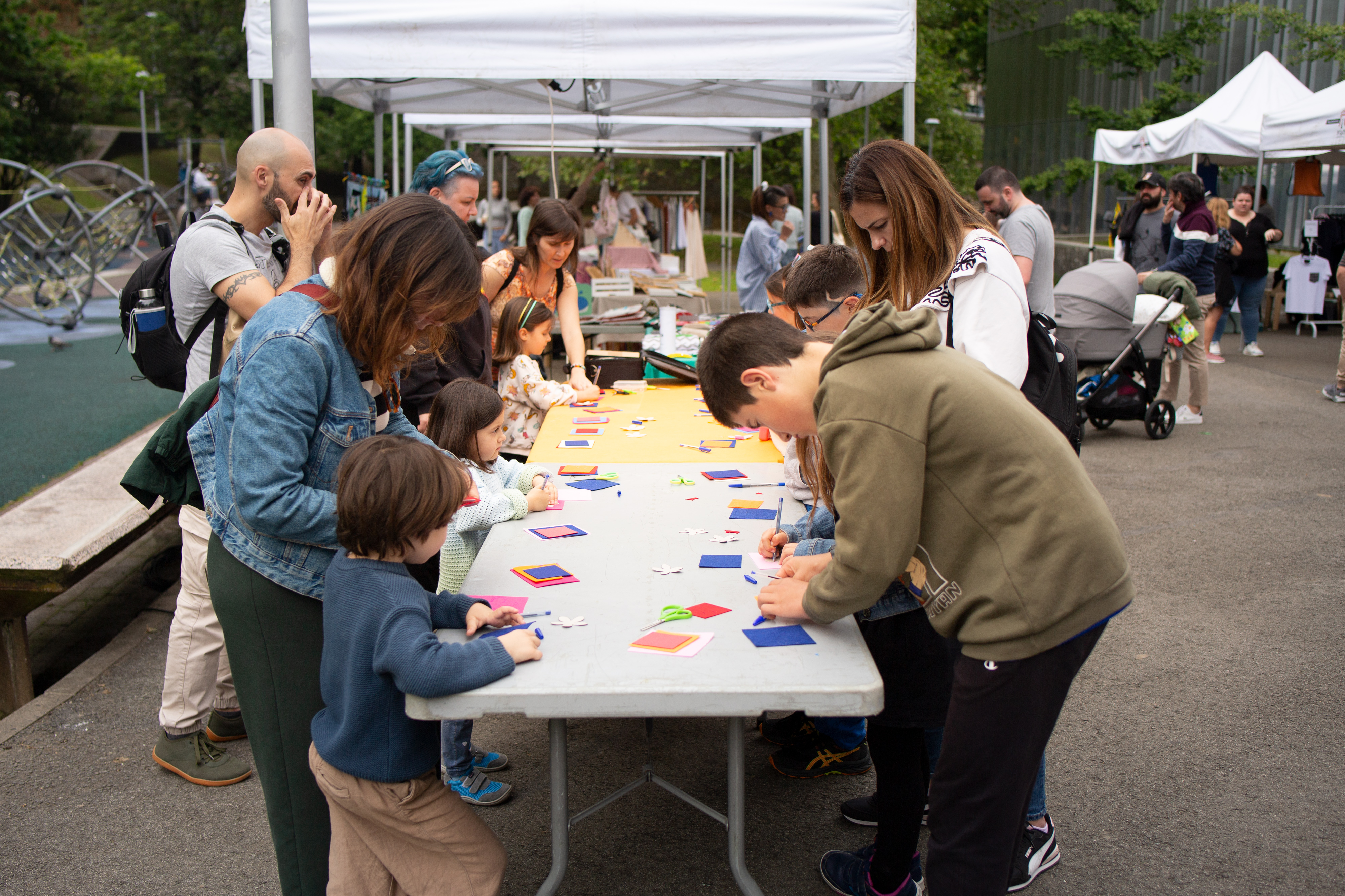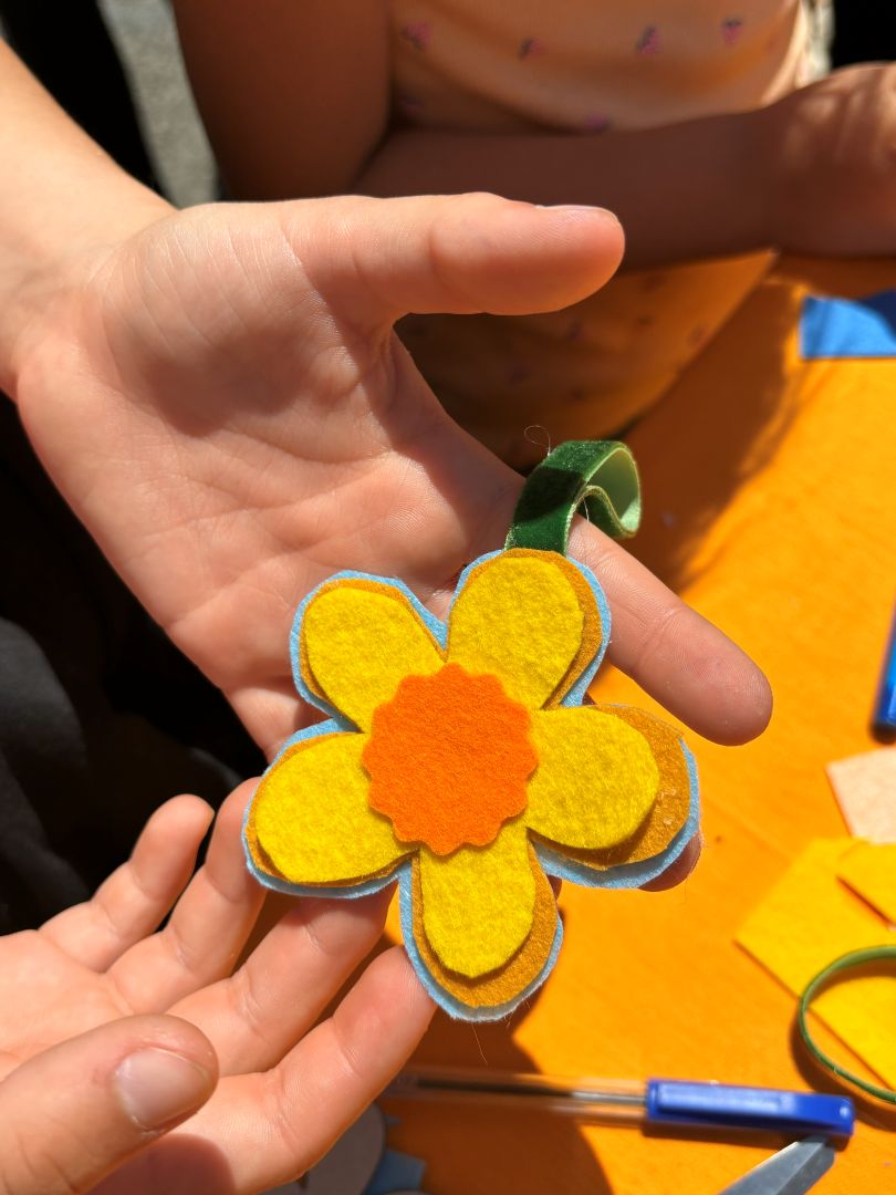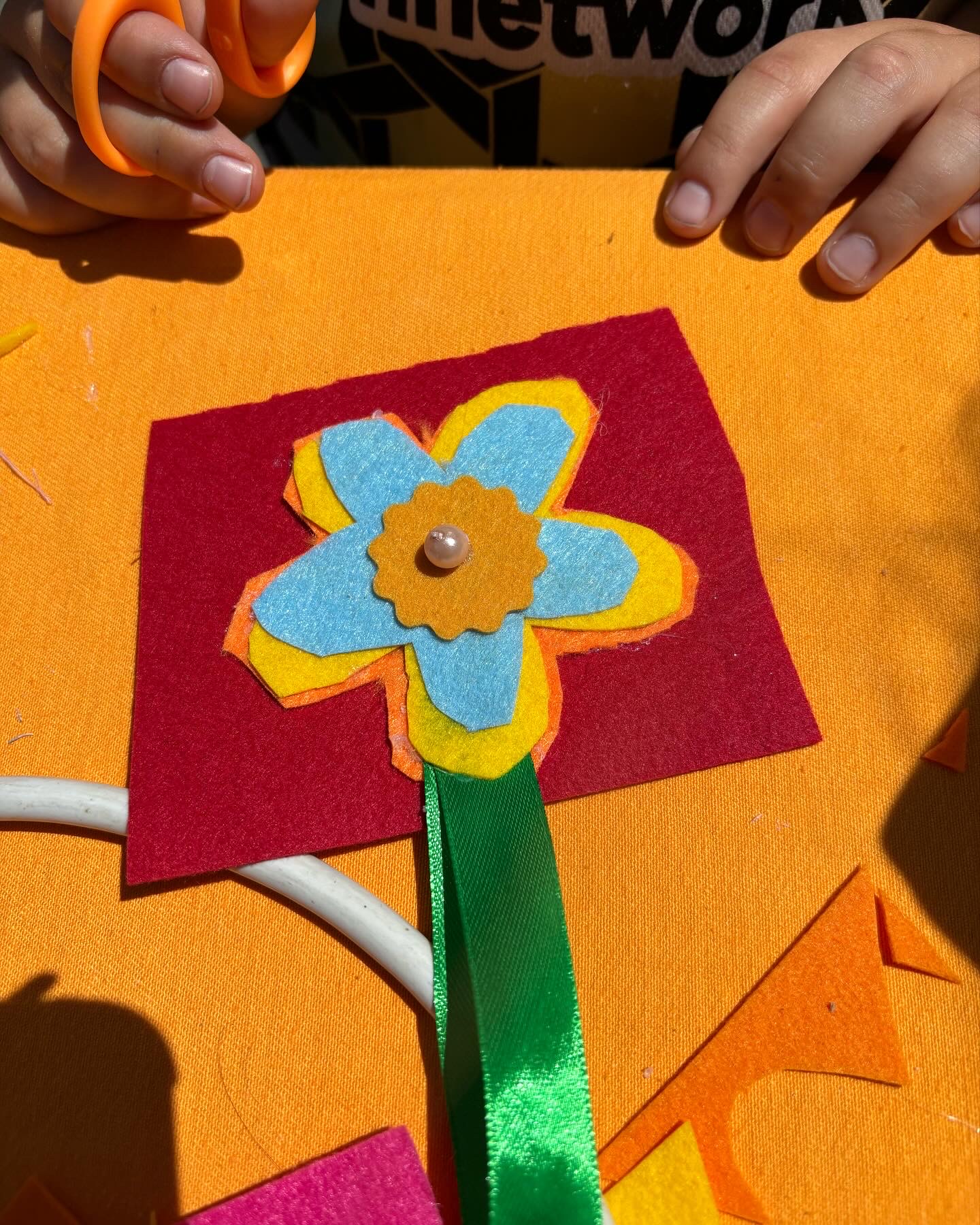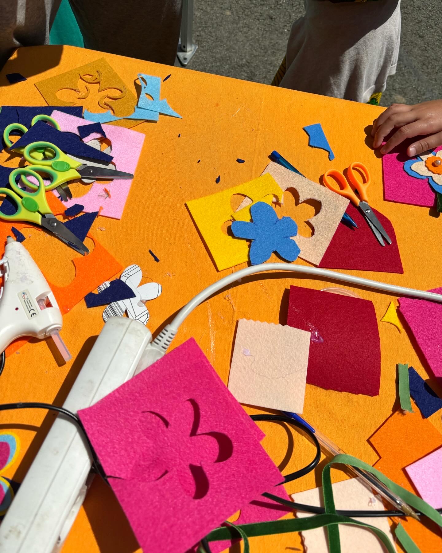 En el ambiente alegre y colorido de la Feria Kolore Kolore en Irún, organizamos un taller especialmente pensado para peques: la creación de un llavero de flor de primavera en fieltro, diseñado y cosido a mano.