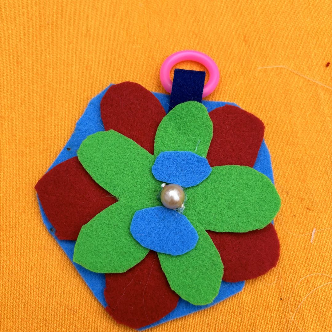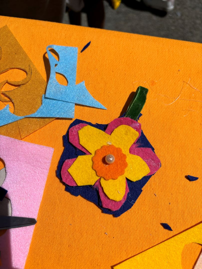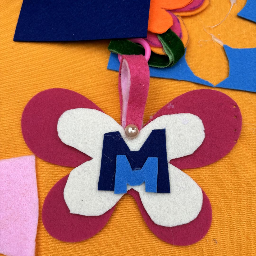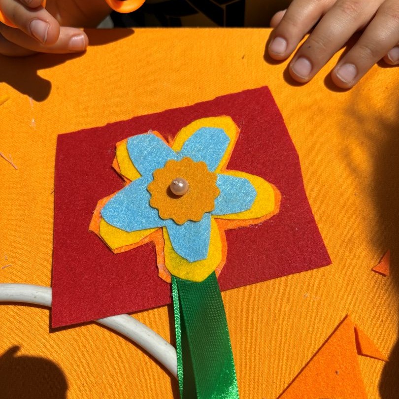 Durante la actividad, cada niña y niño diseñó su propia flor, eligiendo los colores, formas y detalles decorativos que más les inspiraban: pétalos multicolor, centros con botones, hojas verdes y mucho más. Trabajaron con fieltro de alta calidad y materiales seguros, aprendiendo técnicas básicas de costura a mano y montaje de llaveros.