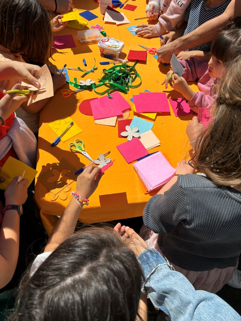 El ambiente fue festivo y lleno de sonrisas, con música, colores y mucha creatividad en el aire. Cada peque pudo dar rienda suelta a su imaginación y crear un accesorio que simbolizaba la alegría y el renacer de la primavera.