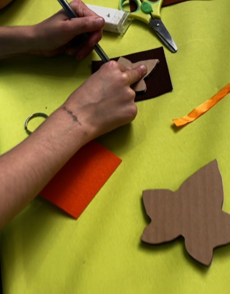 Durante la actividad, niños, niñas y adultos crearon sus propios llaveros inspirados en el otoño: hojas, bellotas, setas, calabazas y otros elementos naturales llenos de color y calidez. Utilizando fieltro de alta calidad, hilos, cuentas decorativas y anillas metálicas, cada participante diseñó un accesorio único y personal.