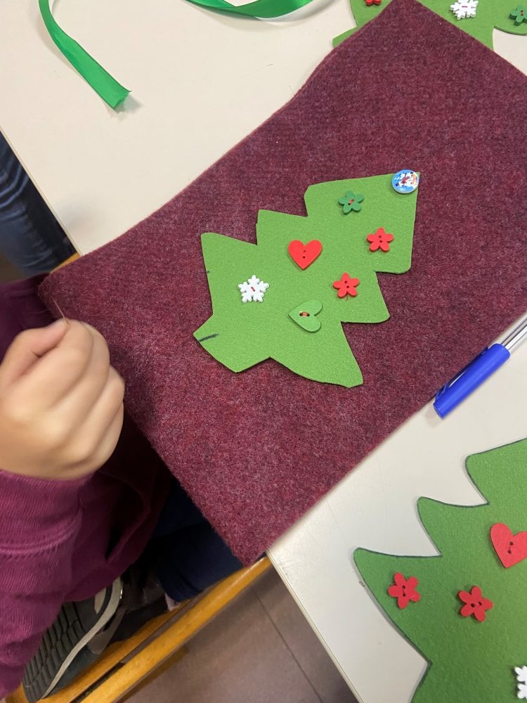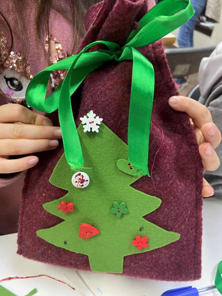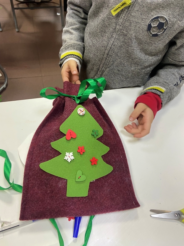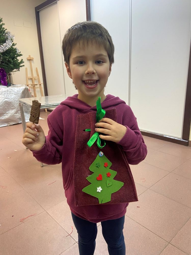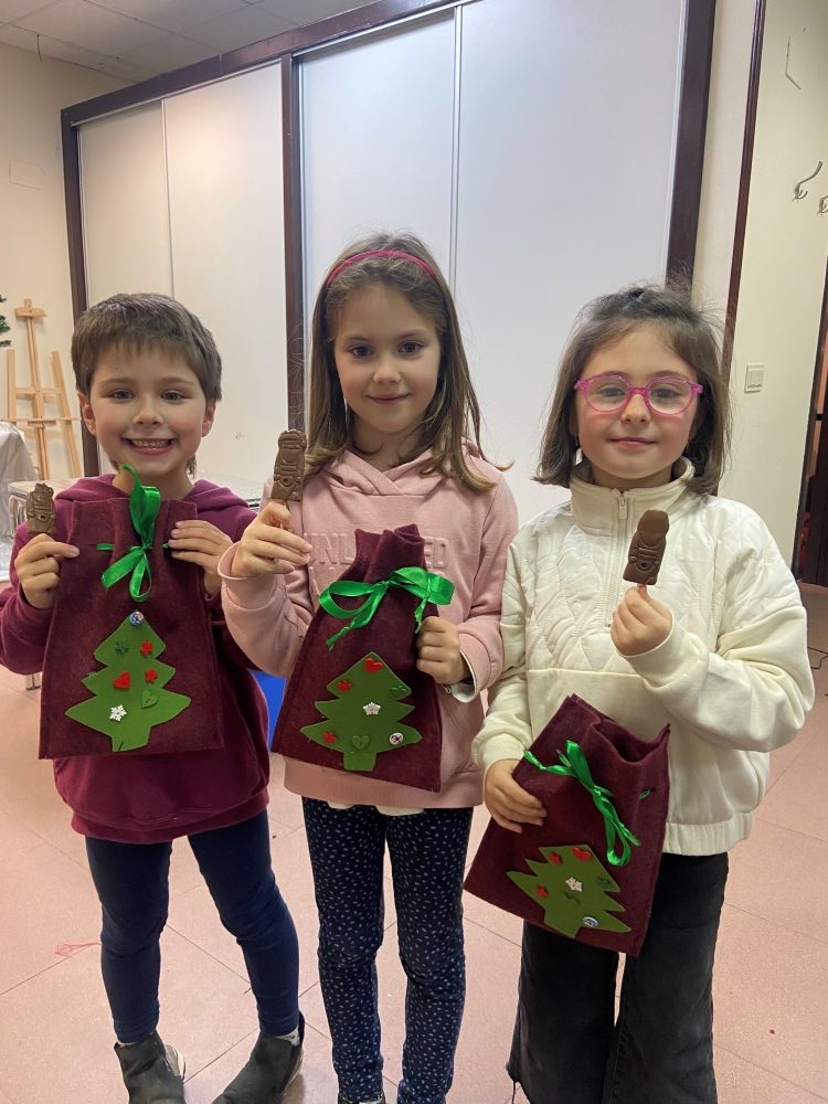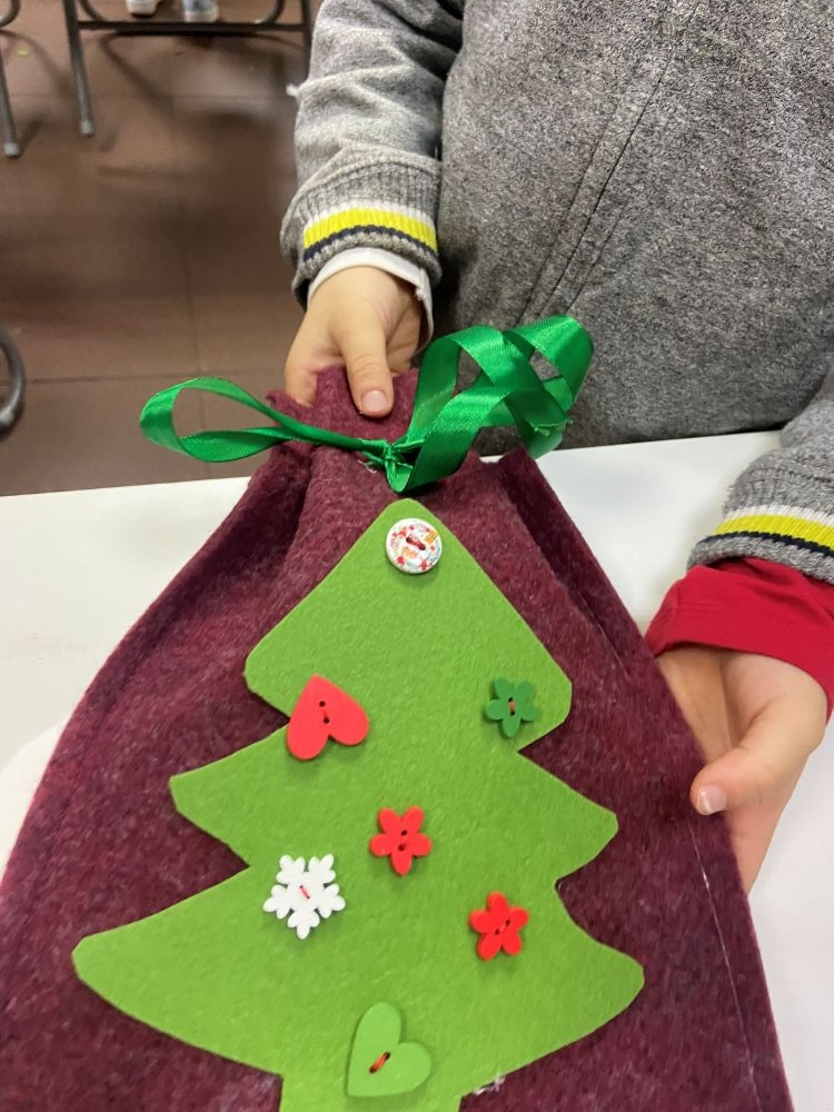 En un ambiente acogedor y familiar, los peques diseñaron su propio saquito utilizando fieltro suave, cintas, botones, estrellitas, copos y corazones, sin necesidad de coser. Cada saquito se convirtió en una pieza única y personal, ideal para colgar del árbol, decorar una estantería o regalar a alguien especial con un mensaje en su interior.