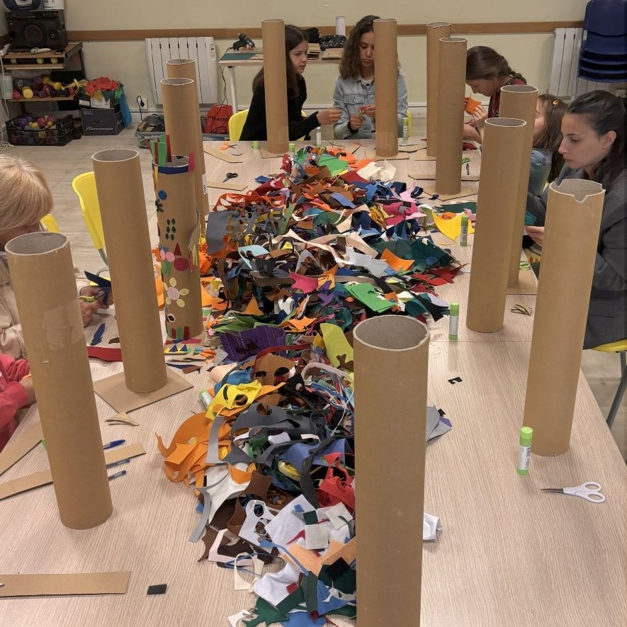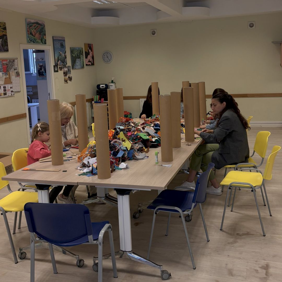 En la Asociación de Vecinos de San Miguel (Irun) organizamos un taller lleno de imaginación, color y conexión familiar: la creación de tótems decorativos con tubos de cartón reciclado y fieltro de colores. Una experiencia pensada para compartir entre generaciones, donde grandes y peques crearon juntos, descubriendo nuevas formas de expresarse a través del arte.